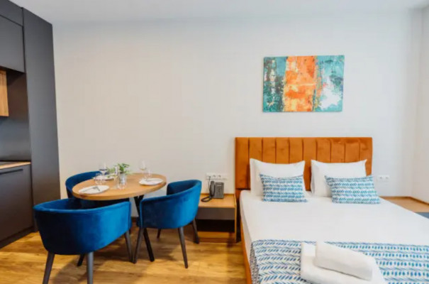 35 м2, балкон с видом на море, спальня с двуспальной кроватью, диван-кровать, обеденная зона, мини-кухня. Максимальное количество гостей: 2 или 3.Deluxe Room/ Делюкс