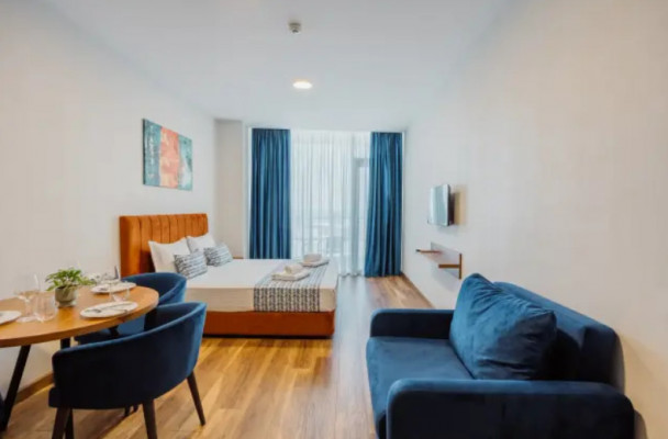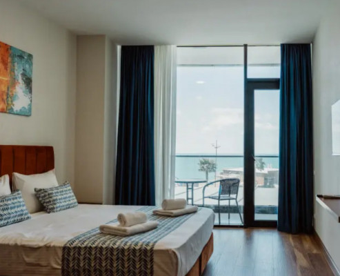 Отель Navi Gonio, расположенный в нескольких шагах от пляжа, предлагает стильное пространство с панорамными бассейнами и качественным сервисом. Он находится примерно в 20 минутах от центра Батуми и всего в 8 км от международного аэропорта.