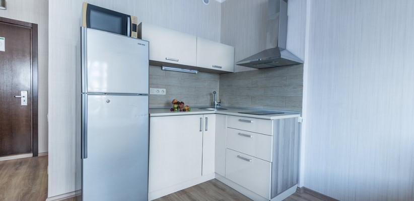 25–30 м², с видом на море, студия с двуспальной кроватью, частичная кухонная зона, балкон, количество гостей: 2