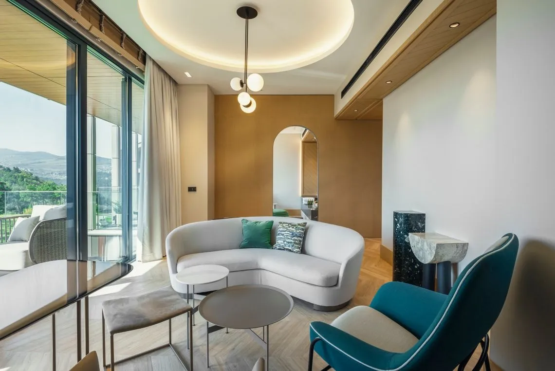 Paragraph Golf & Spa Tabori — это независимый отель класса Autograph Collection над Тбилиси. Отель расположен высоко над городом, предлагая панорамные виды, чистый воздух и атмосферу спокойствия всего в 10 минутах поездки на канатной дороге от площади Свободы. Он сочетает в себе городской шарм, природное окружение и изысканный отдых. Интерьеры отеля выполнены с использованием натуральных материалов и вдохновлены Национальным ботаническим садом.