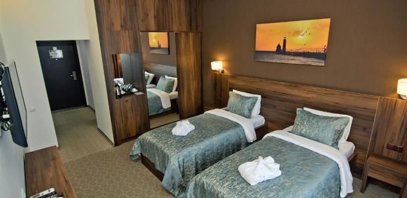 Отель находится в оживленной части города, рядом с кафе, ресторанами, торговыми центрами, парками и зонами отдыха, а также вблизи танцующих фонтанов, аквапарка и прогулочных пространств. До пляжа и набережной можно дойти пешком, что позволяет легко планировать отдых у моря без использования транспорта.
