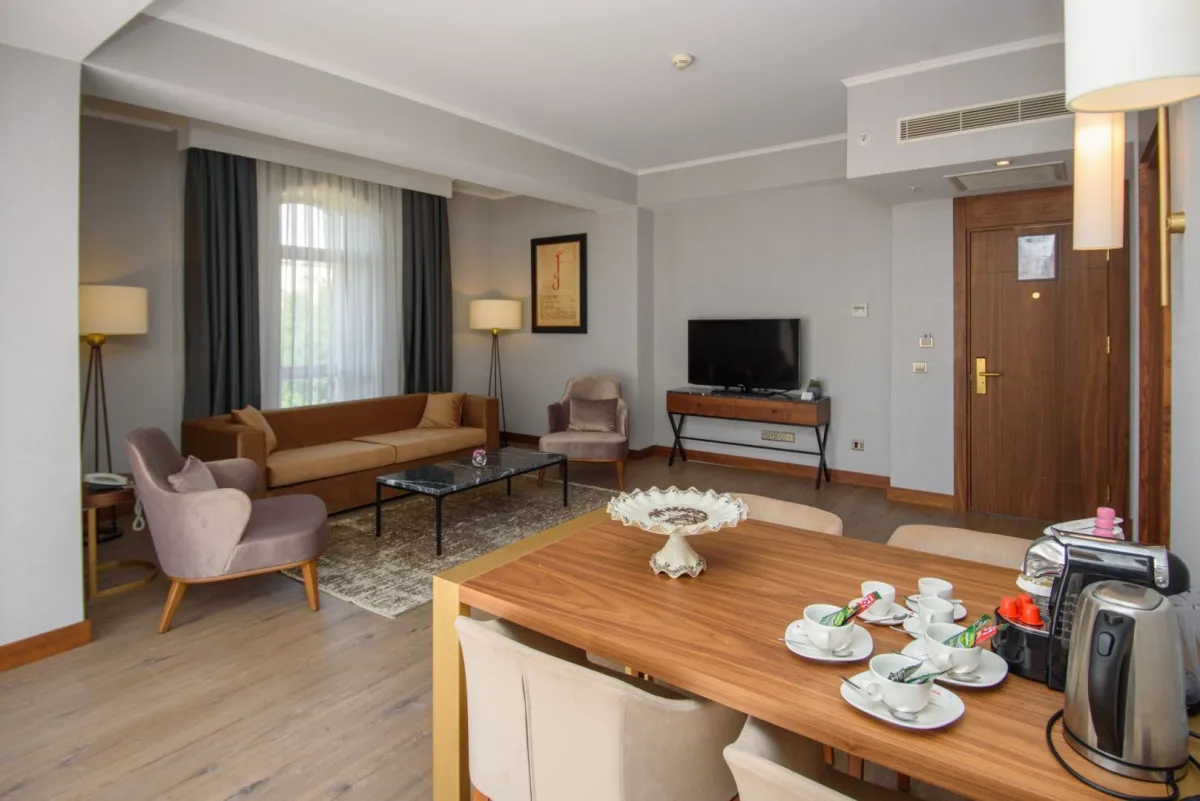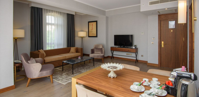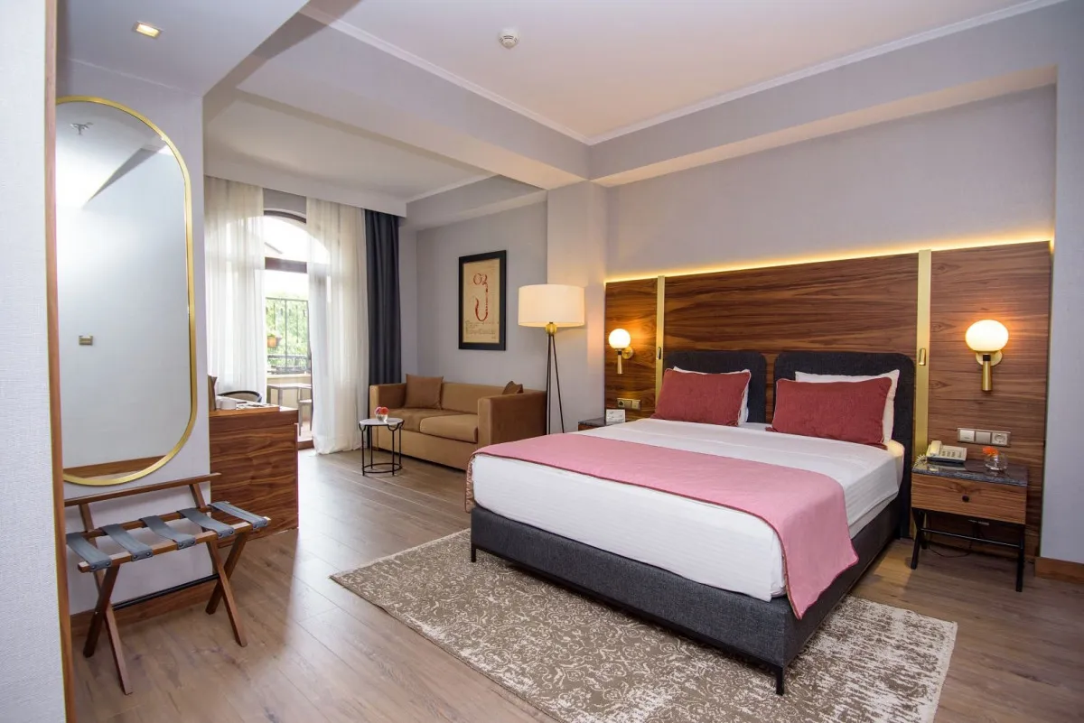 60 м2, номер состоит из просторной спальни с большой кроватью, отдельной гостевой/ столовой комнаты с раскладным диваном, двух ванных комнат и балконаPremium Superior