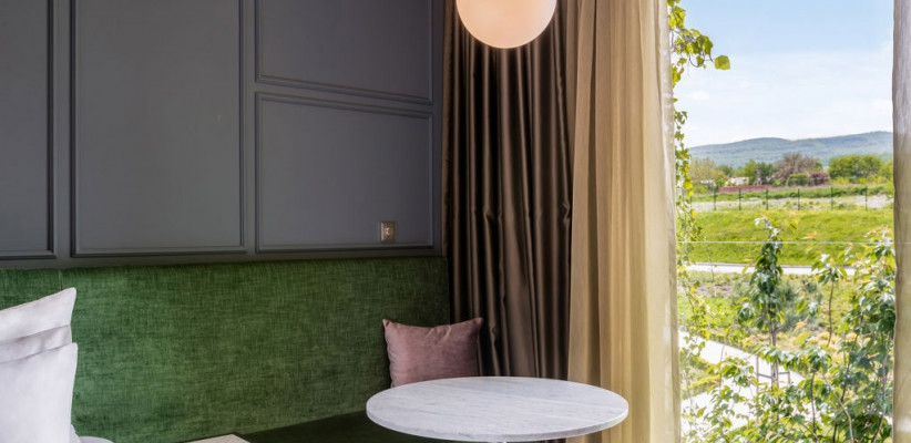 41-58 м2, терраса с видом на горы или виноградники, спальня с двуспальной кроватью размера king-size или с двумя односпальными кроватями, кресло с кофейным столиком. Максимальное количество гостей: 2 или 3.Premium Room/ Премиум