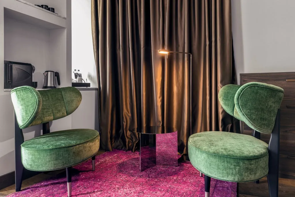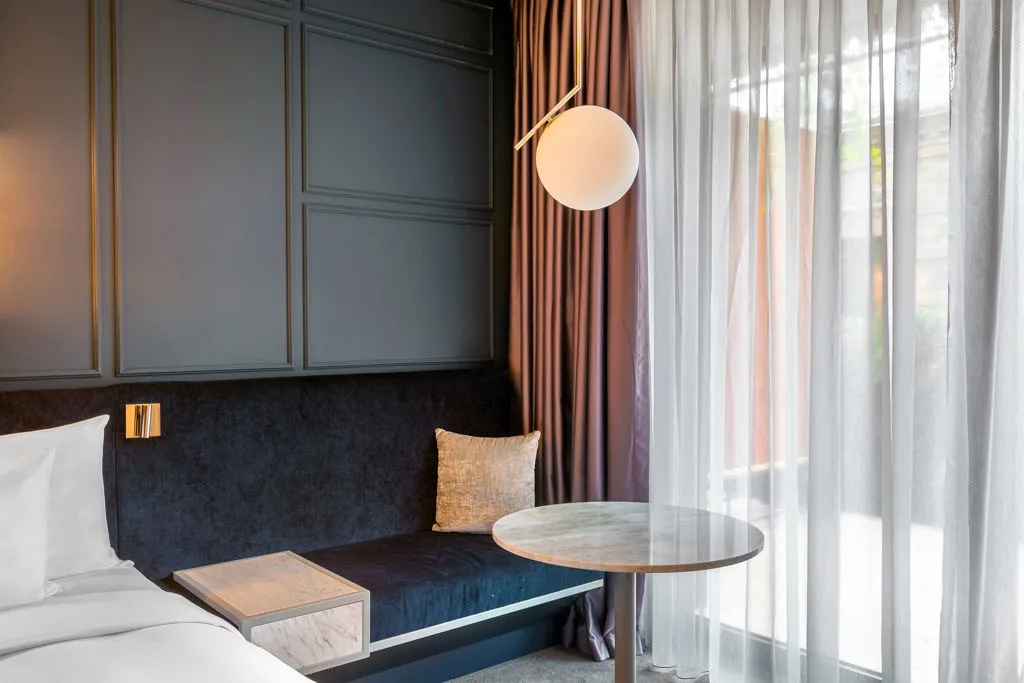 - Дизайнерские номера и люксы вдохновлены временами года и гармонично сочетают в себе индустриальный шик с натуральными материалами региона.