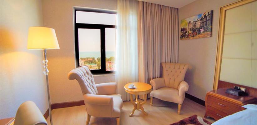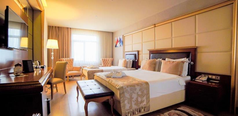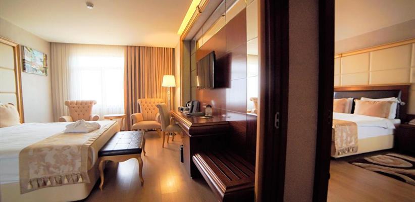 Deluxe room - номер, площадью 36 кв. м., максимальное размещение 3 взрослых, в спальне – двуспальная и односпальная кровати.