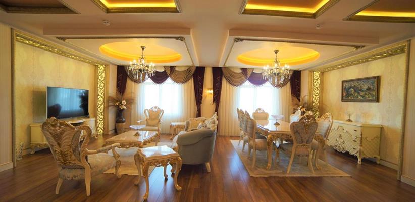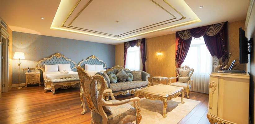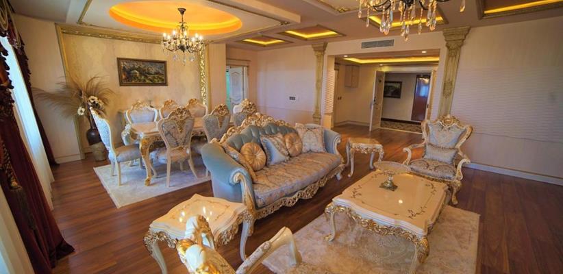 Presidential suite – номер, площадью 220 кв. м., максимальное размещение 4 взрослых, в спальне двуспальная кровать и две односпальные.