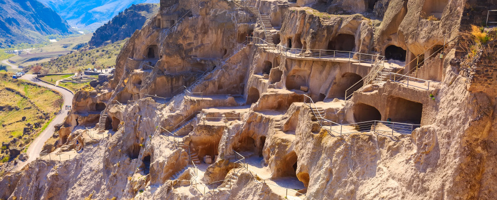 Далее экскурсия отправится еще южнее, чтобы узнать больше о Золотом веке Грузии. Недалеко от южной границы грузинского царства в XII веке царь Георгий III приказал высечь в скале пещерный город-монастырь Вардзиа, а его дочь, великая царица Тамара, основательно укрепила его. Землетрясение 1283 года обнажило большую часть пещер, и во время экскурсии туристы увидят трапезные, кладовые, тайные ходы, подземное озеро.