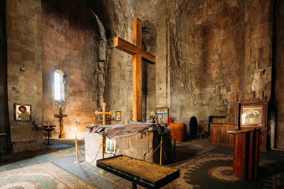Кафедральный собор Светицховели XI в., он же Собор двенадцати апостолов. В его основании покоится Хитон Господень. Благодаря этой святыне Мцхету называют «вторым Иерусалимом». По легенде, храм был воздвигнут над источавшим благовонное масло пнем того кедра, под которым молилась просветительница Грузии – святая Нино.