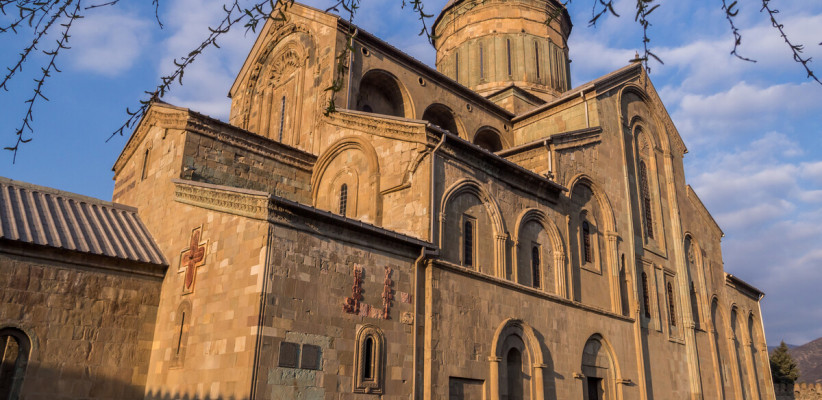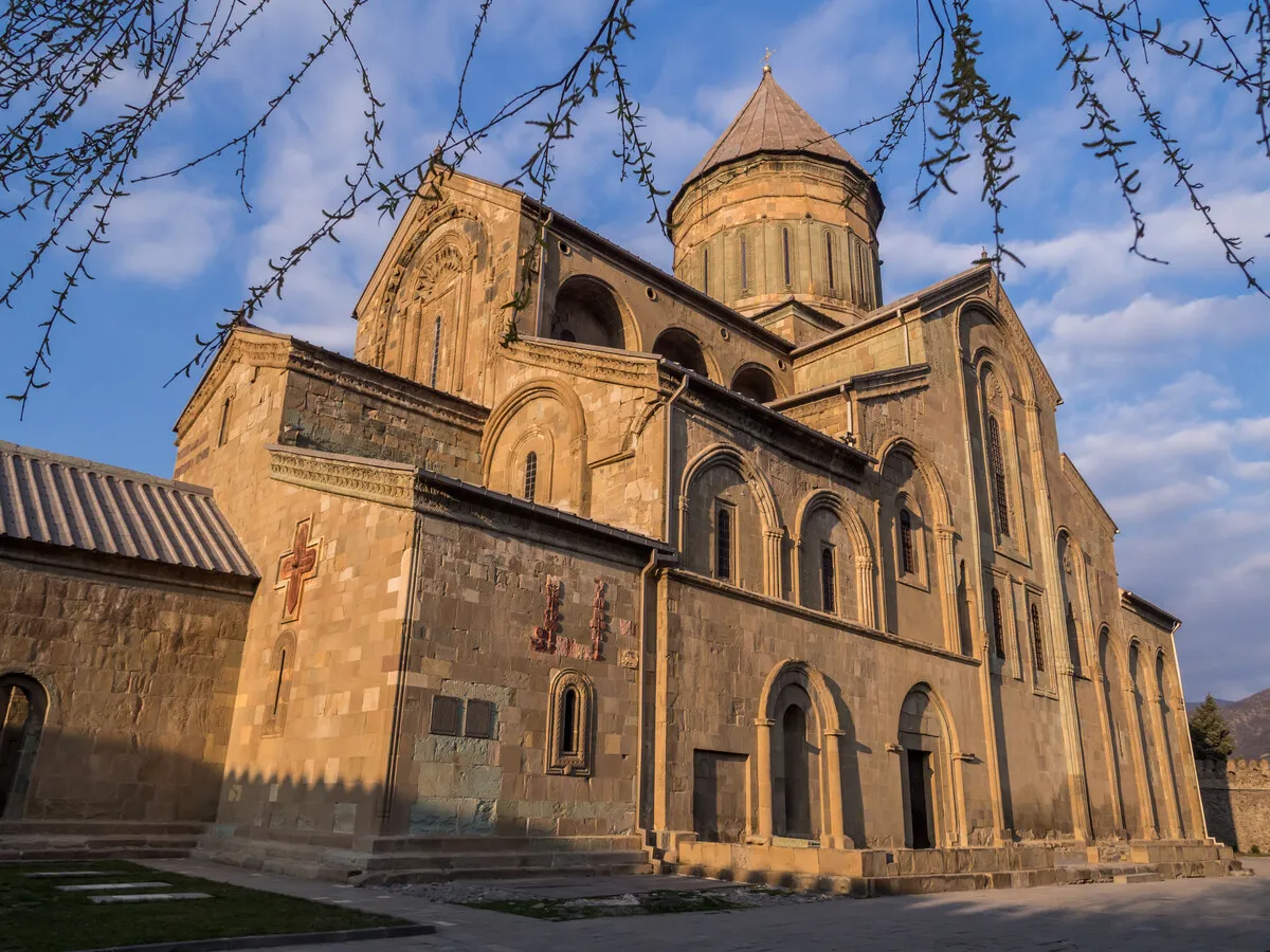 Кафедральный собор Светицховели XI в., он же Собор двенадцати апостолов. В его основании покоится Хитон Господень. Благодаря этой святыне Мцхета называют «вторым Иерусалимом». По легенде, храм был воздвигнут над источавшим благовонное масло пнем того кедра, под которым молилась просветительница Грузии святая Нино.