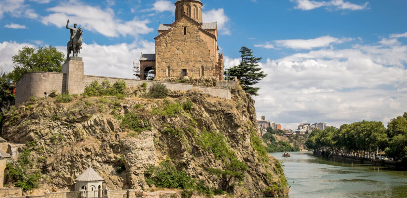 Памятник царю Вахтангу Горгасали у храма Метехи. Рассказ о невероятных подвигах полководца. Панорама Старого города.