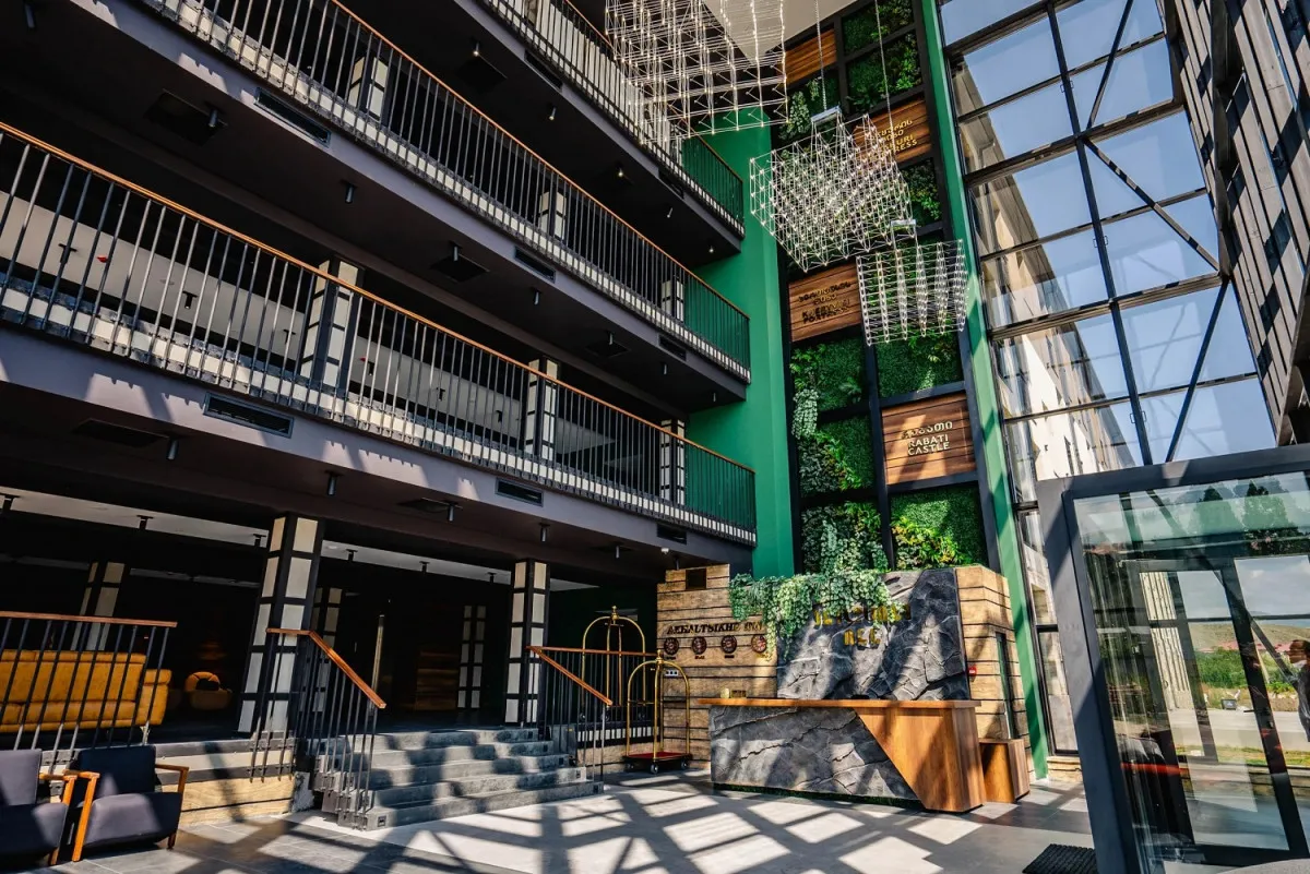 Современный дизайн отеля Akhaltsikhe Inn органично сочетается с месхетинскими мотивами в интерьере. Стены украшены сценами из поэмы Шоты Руставели «Витязь в тигровой шкуре», визуально рассказывающими туристам многовековые легенды. Тема исторического наследия продолжается и в названии главного ресторана «Зедаше», которое отсылает к традиции первого, самого ценного отжима винограда. Здесь подают блюда интернациональной и грузинской кухни. Для размещения гостей Akhaltsikhe Inn предлагает 115 номеров – от классических категорий до двухкомнатных люксов. Для полноценного отдыха после насыщенных экскурсий в отеле имеются крытый бассейн, финская сауна и фитнес-зал. Для деловых мероприятий доступны два конференц-зала.