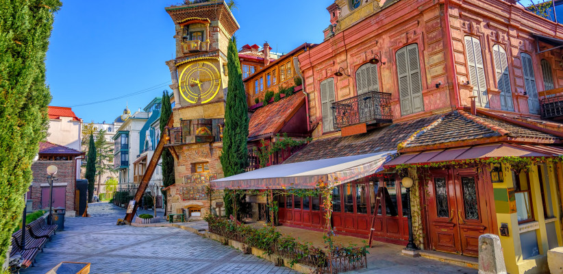 Прогулка по старому Тбилиси включает дегустацию натуральных вин и осмотр аутентичных парадных дворов с резными балконами. Программа продолжается в Музее театра, музыки, кино и хореографии.