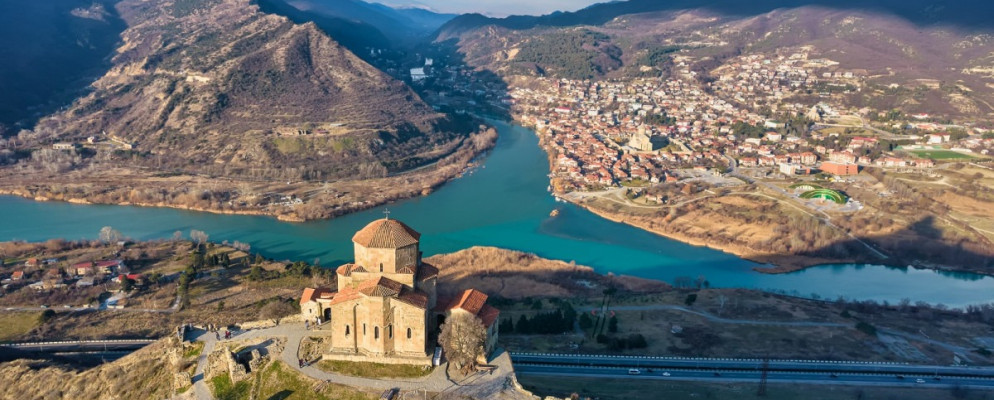 Монастырский храм Джвари V века, откуда открывается прекрасная панорама древней столицы. Он стоит у самого края высокого утеса, гармонируя с окружающей его живописной природой. Внизу шумят Кура и Арагви – две самые известные реки в Грузии. А напротив открывается обширная панорама Мцхеты. На склонах у Джвари растет Дерево желаний, на которое паломники завязывают ленточки.