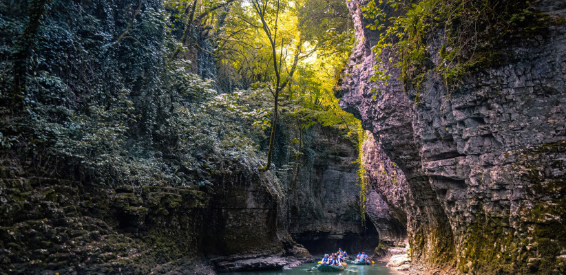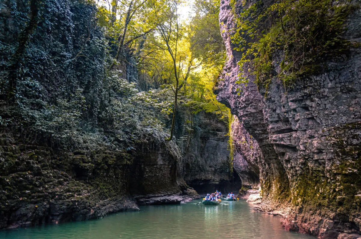 Начало экскурсионной программы в каньон Мартвили и пещеру «Прометей» (продолжительность 10–11 часов).