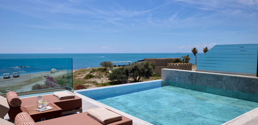 37 м2, терраса 20 м2 с бассейном и частичным или полным видом на море, кровать king-size и диван-кровать. Максимальное количество гостей: 3.Mediterranean Suite