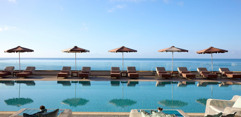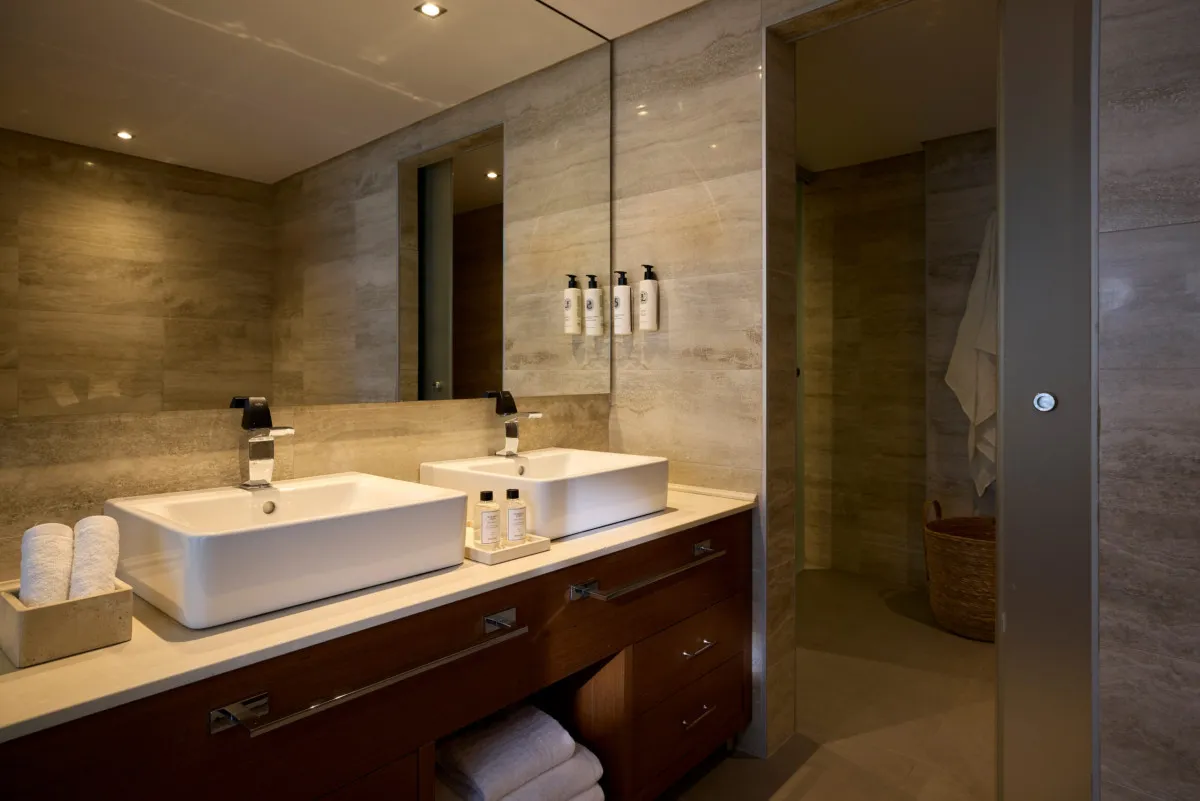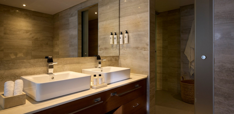 59 м2, терраса 30 м2 с бассейном и видом на море, кровать king-size, гостиная, гардеробная, джакузи. Максимальное количество гостей: 4.