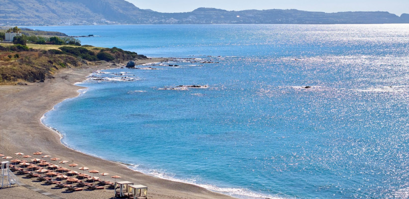 Отель на второй береговой линии имеет частный оборудованный песчано-галечный пляж протяженностью 100 м, номинированный на «Голубой флаг». Зонтики и полотенца предоставляются бесплатно. Балийские шезлонги – за дополнительную плату.
