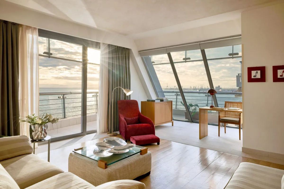 100 – 110 м2, люкс с видом на море, террасой, кроватью king-size, гостиной с обеденной зоной, ванной комнатой.