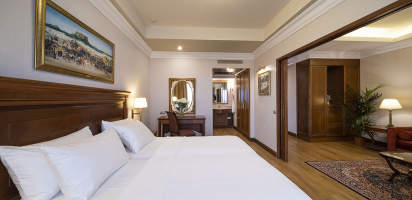 28-40 м2, балкон, вид на Акрополь, спальня, отдельная гостиная, ванная комната, отделанная мрамором, с джакузи. Количество гостей: до 3Presidential Suite (4 этаж)