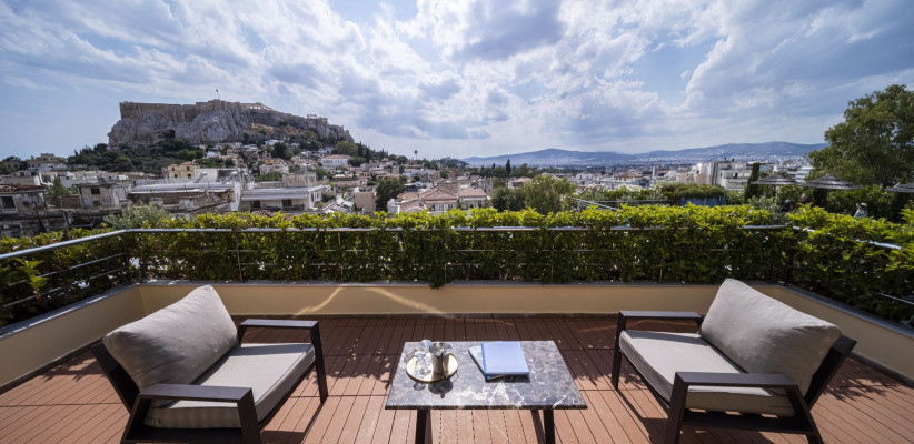 28-34 м2, балкон (в некоторых номерах), вид на Акрополь или на сад, спальня, просторная гостиная зона с рабочим местом, ванная комната с ванной. Количество гостей: до 3Suite Acropolis View & Balcony