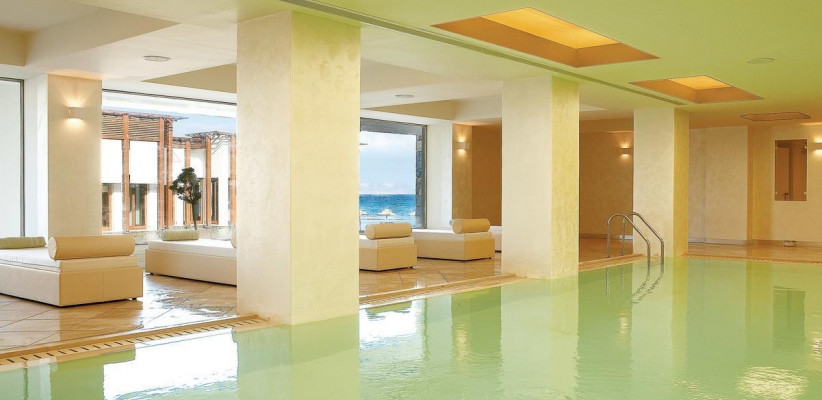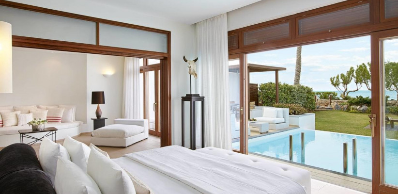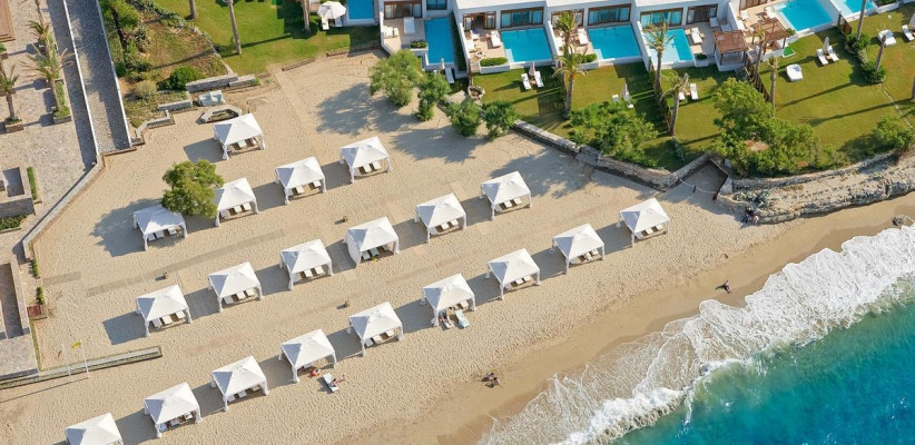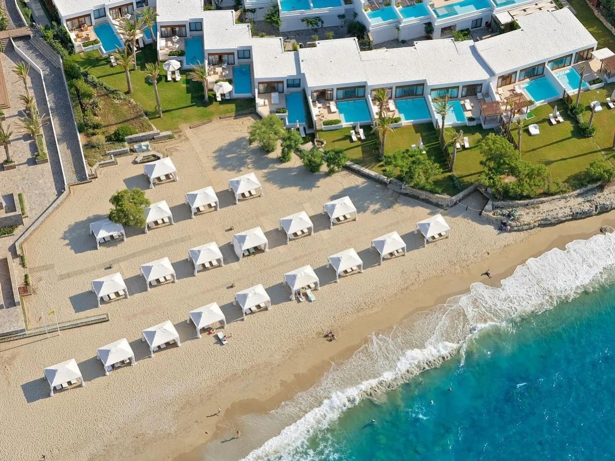 Номерной фонд насчитывает более двух сотен вариантов размещения – от стандартных номеров до просторных люксов и вилл с собственными бассейнами. Интерьеры выполнены в светлых и теплых тонах, с натуральными материалами, панорамными окнами и террасами. Виллы предлагают максимум уединения, захватывающий вид на море и высокий уровень сервиса – отличный вариант для романтического отдыха или путешествия семьей. Пляж отеля песчаный, удобный, с пологим входом. Кроме того, на территории есть большой олимпийский бассейн, детские зоны и крытый подогреваемый бассейн в спа-центре.