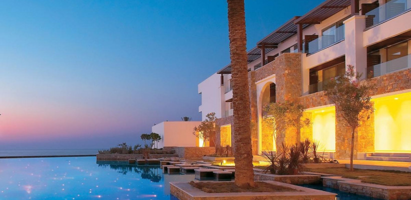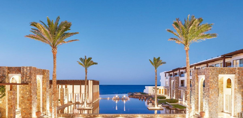 Отель Grecotel Amirandes 5* – один из самых известных и эффектных курортов на острове Крит. Отель расположен примерно в 20 минутах езды от аэропорта Ираклиона, на первой линии у моря. Архитектура вдохновлена минойскими дворцами и венецианскими мотивами: вокруг главного здания раскинуты лагуны, отражающие солнечный свет, создавая атмосферу морского дворца. На территории много зеленых садов, а общий стиль – спокойная элегантность Средиземноморья.