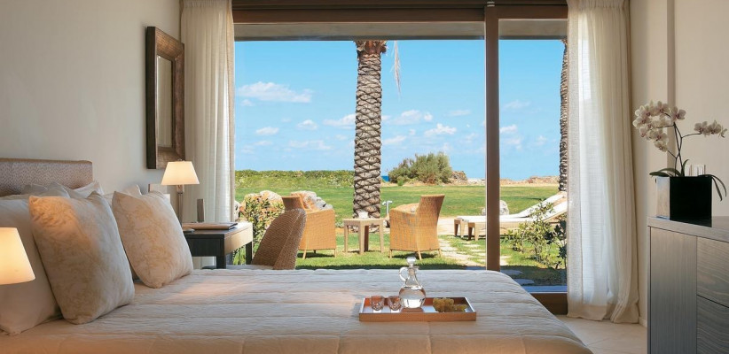 100 м2, открытое пространство площадью 30 м2, вид на сад и частично на море. Две главные спальни с кроватями king-size и две гостиные, три ванные комнаты. Максимальное количество гостей: 6 взрослых.Superior Room Garden View