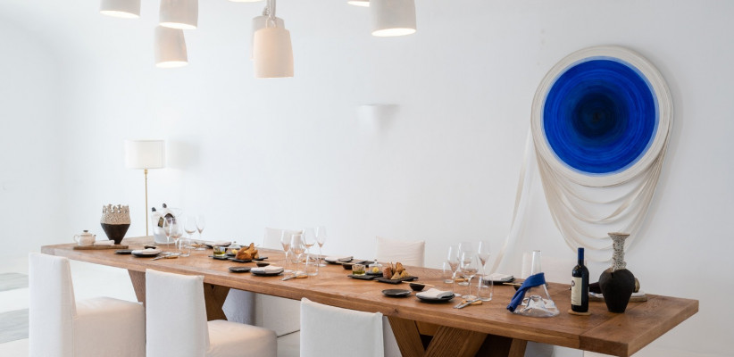 Кухня отеля Grecotel Mykonos Blu отражает новый мировой миконосский стиль. Здесь находятся несколько ресторанов с традиционной греческой кухней и средиземноморскими блюдами.
