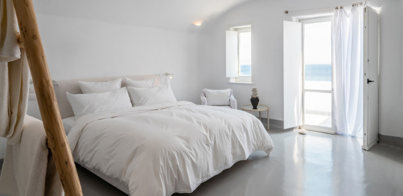 70 м2 с видом на море, частной террасой и бассейном. В номере: спальня с кроватью king-size и два дивана-кровати, гостиная, телевизор, две ванные комнаты. Максимальное количество гостей: 2 взрослых, 2 ребенка.Mykonos Blu Junior Villa Private Pool