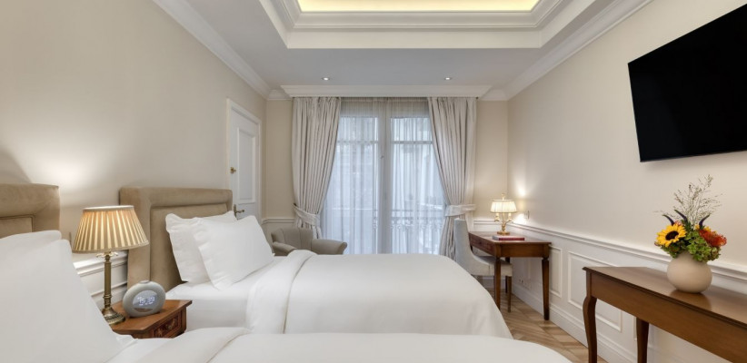 24 м2, вид на внутренний двор, кровать king-size или две односпальные кровати, мраморная ванная комната с ванной и душем. Максимальное количество гостей: 2.Deluxe