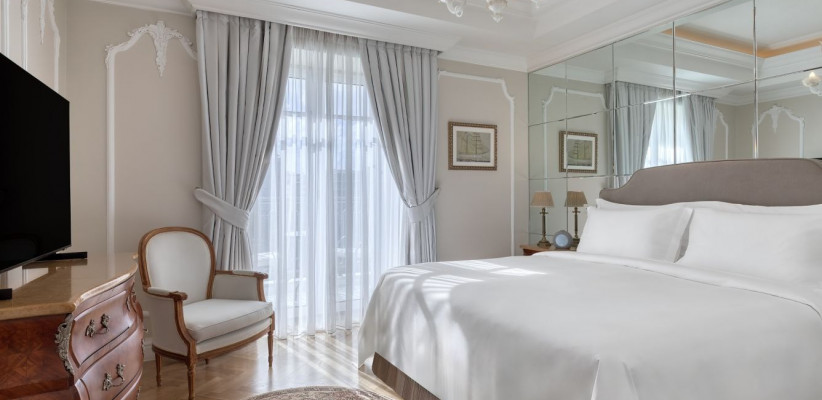 50 – 65 м2, вид на внутренний двор, спальня с кроватью king-size, гостиная, мраморная ванная комната с ванной и душем. Максимальное количество гостей: 3.Grand Suite