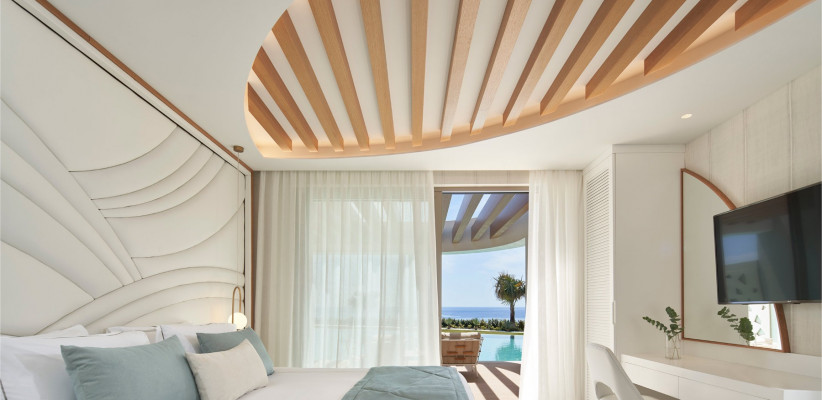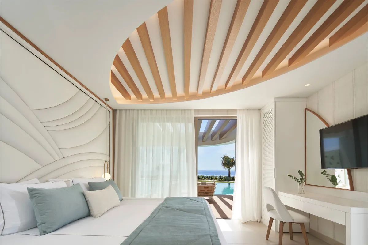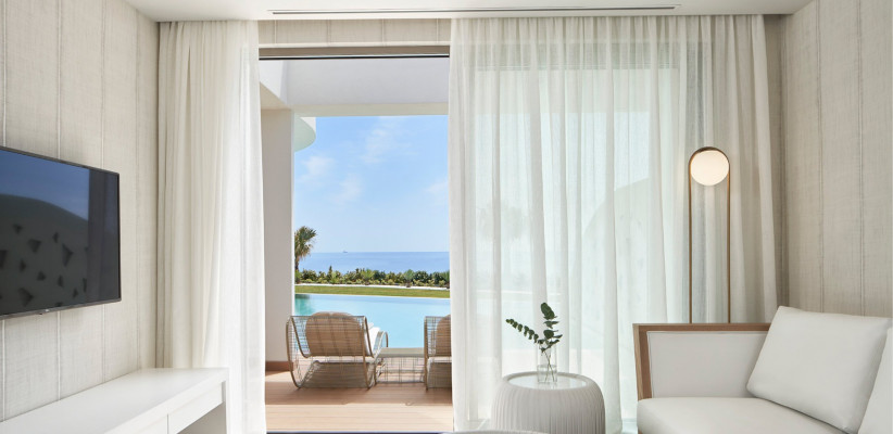 40 м2, с прямым доступом к общему бассейну с подогревом и видом на море, кроватью king-size или двумя односпальными кроватями, диваном-кроватью. Максимальное количество гостей: 4.Mayia Suite