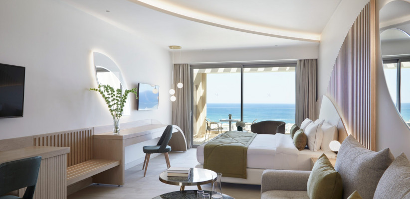 Отель представляет собой комплекс зданий высотой до трех этажей. Номерной фонд составляют 250 просторных номеров и люксов со стильной мебелью, современным декором и видом на Эгейское море.Deluxe Room