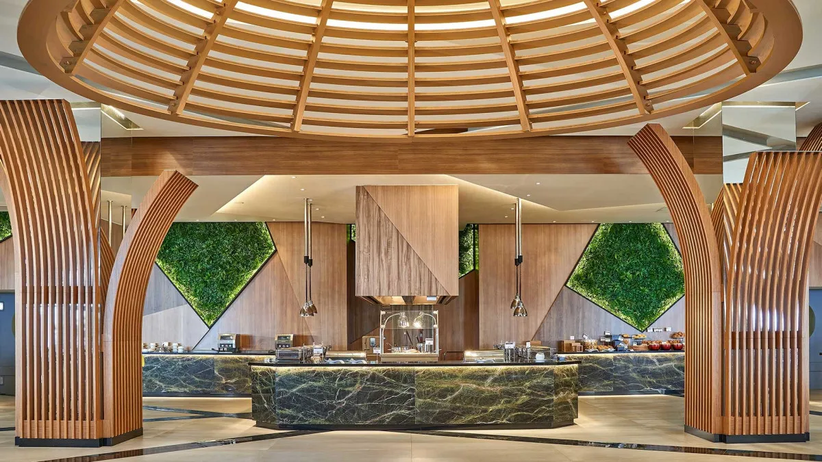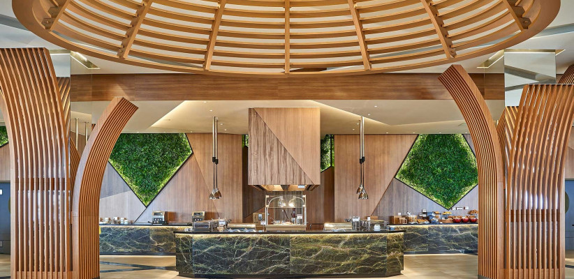 - Waterfront – ресторан средиземноморской кухни с обслуживанием в формате шведского стола и кулинарными шоу. Расположен в главном здании отеля. Время работы: с 07:00 до 11:00, с 12:30 до 14:30 и с 18:30 до 21:30