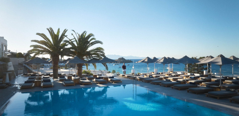 Myconian Ambassador, принадлежащий сети отелей Myconian Collection, представляет собой эталон роскоши на острове Миконос в Греции. Отель класса люкс расположен на склоне холма и открывает захватывающие панорамные виды на Эгейское море, обеспечивая доступ к пляжу с мелким песком. Его архитектура, выполненная в кикладском стиле с белоснежными террасами и изогнутыми линиями, гармонично вписана в ландшафт.