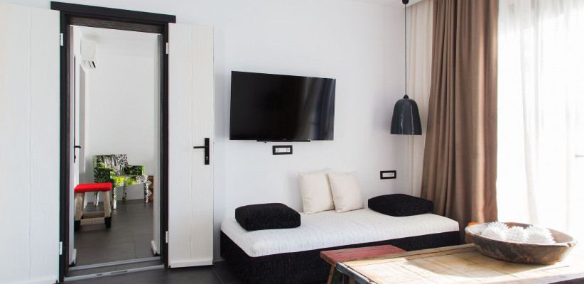 90 м2, вилла с видом на море, террасой с инфинити-бассейном, двумя спальнями, гостиной с диванами-кроватями, оборудованной кухней, двумя ванными комнатами. Максимальное количество гостей: 5.One Bedroom Apocalypsis Villa