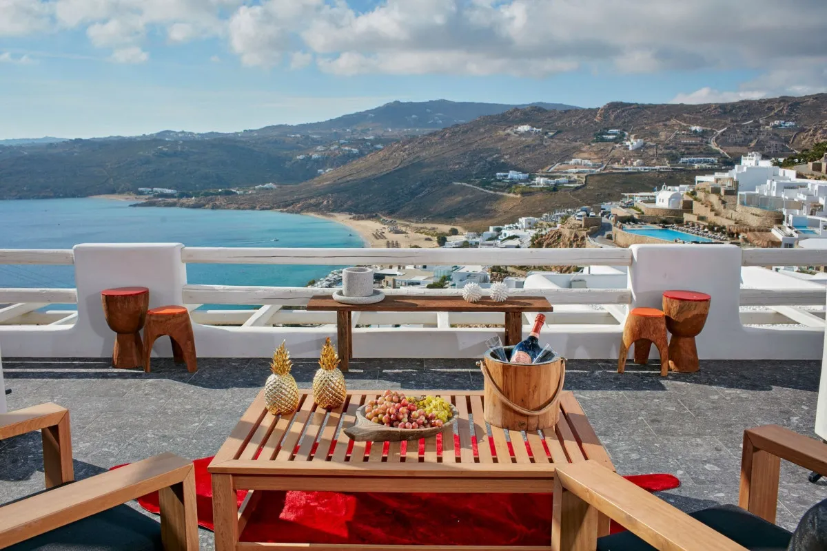 120 м2, вилла с видом на пляж Элия и горы, просторной террасой площадью 150 м2 с инфинити-бассейном, одной спальней, гостиной с двумя диванами-кроватями, оборудованной кухней, ванной комнатой. Максимальное количество гостей: 4.Four Bedroom Apocalypsis Villa