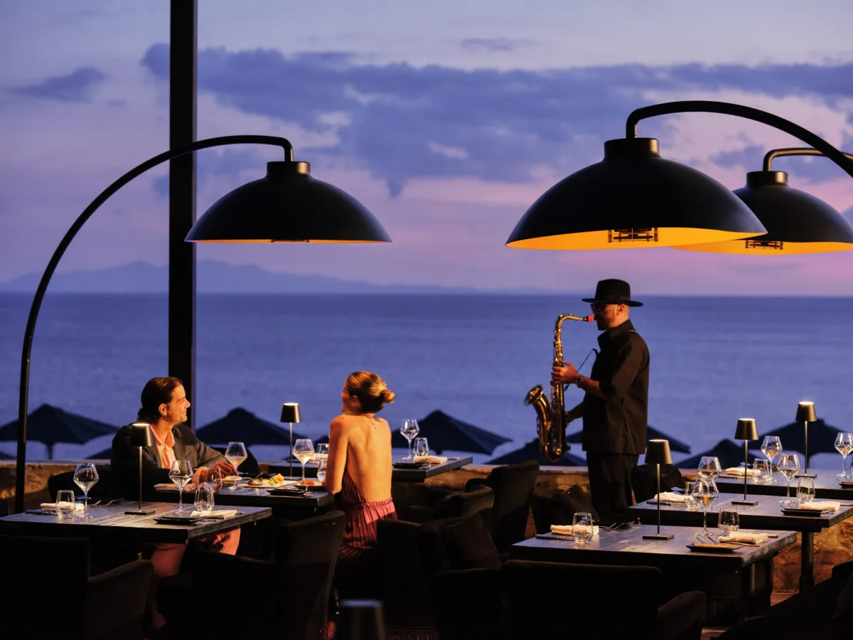 Отель насчитывает 111 номеров разных категорий – от стандартных комнат до люксов и вилл. Все номера оформлены в современном стиле и оборудованы балконом или террасой с видом на море, в некоторых есть джакузи или частный бассейн. Питание в отеле организовано на высоком уровне: завтраки подаются в ресторане Meltemi в формате шведского стола, а в основном ресторане Celebrities можно попробовать блюда средиземноморской кухни из морепродуктов, есть бар у бассейна, пляжный и коктейльный бары. Также туристам доступны дополнительные гастрономические опции в пределах группы отелей.