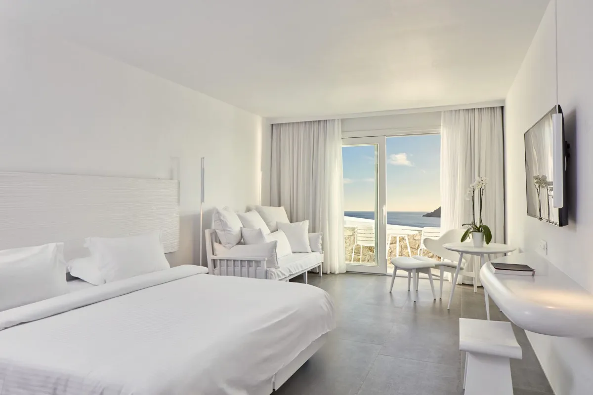 35 м2, балкон или терраса с джакузи или бассейном, вид на море. Одна кровать king-size или две односпальные, гостиная зона с диваном. Максимальное количество гостей: 3 взрослых или 2 взрослых и 2 ребенка до 12 лет.Premium Room