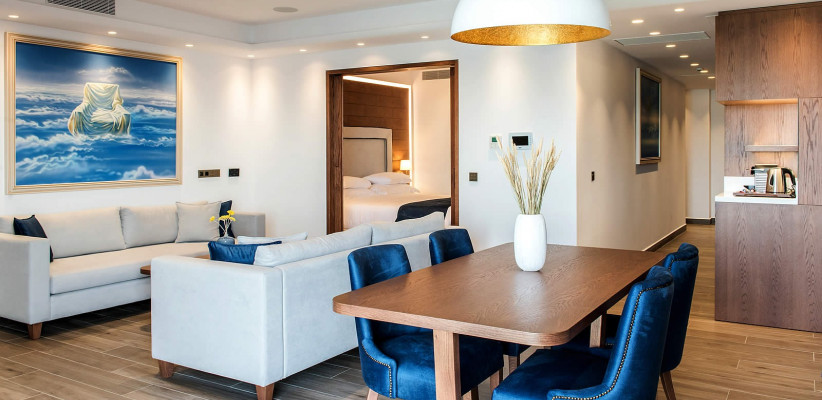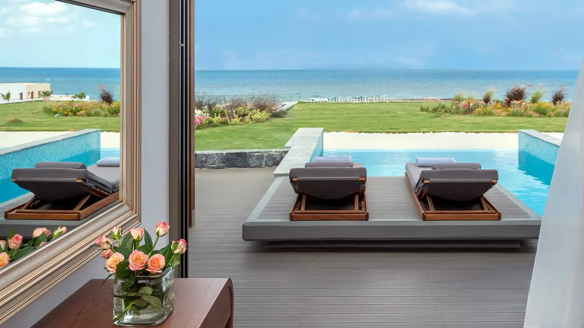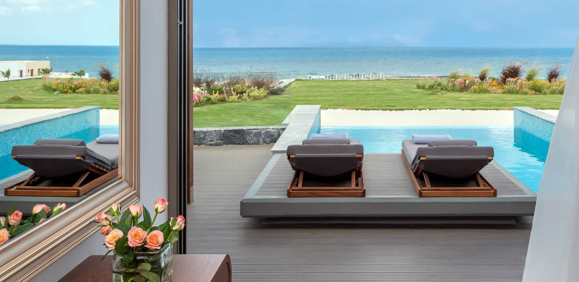 - Люксы и виллы с видом на море, частными бассейнами, саунами и индивидуальными фитнес-зонами. Удобные семейные категории со смежными комнатами и виллы с несколькими спальнями.
