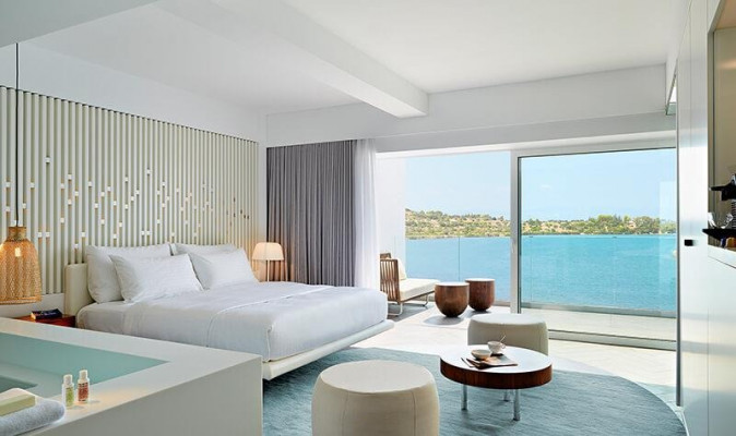55 м2, номер с видом на море, доступом к общему бассейну, душем и ванной в ванной комнате. Максимальное количество гостей: 3.Ultra Suite with Sea View