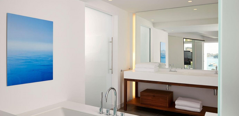 90 м2, номер с видом на море, одной кроватью king-size или двумя односпальными кроватями, диваном-кроватью в зоне отдыха, душем и ванной в ванной комнате. Максимальное количество гостей: 4.Ultra Suite with Rooftop Jacuzzi & Sea View