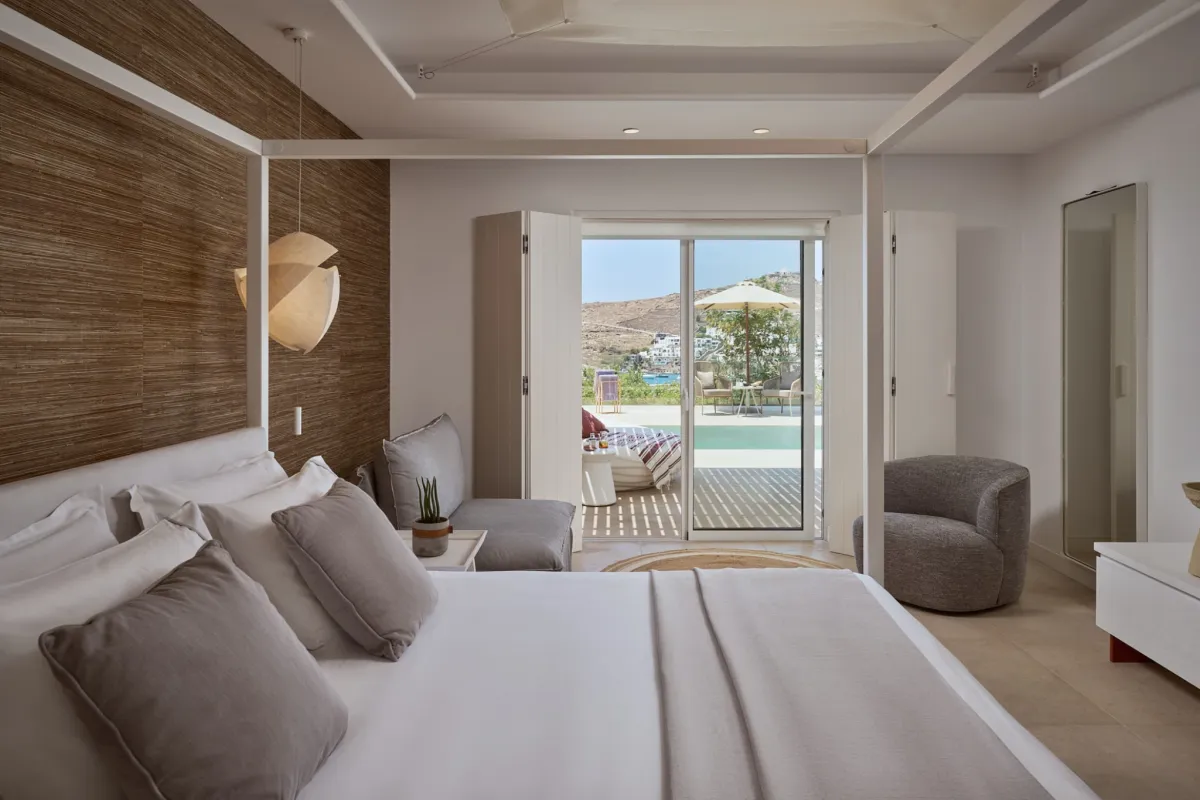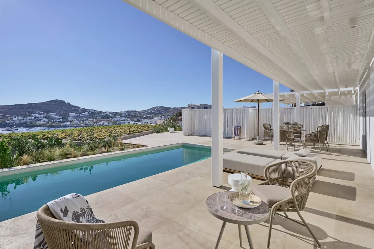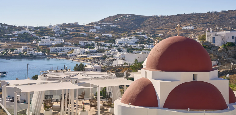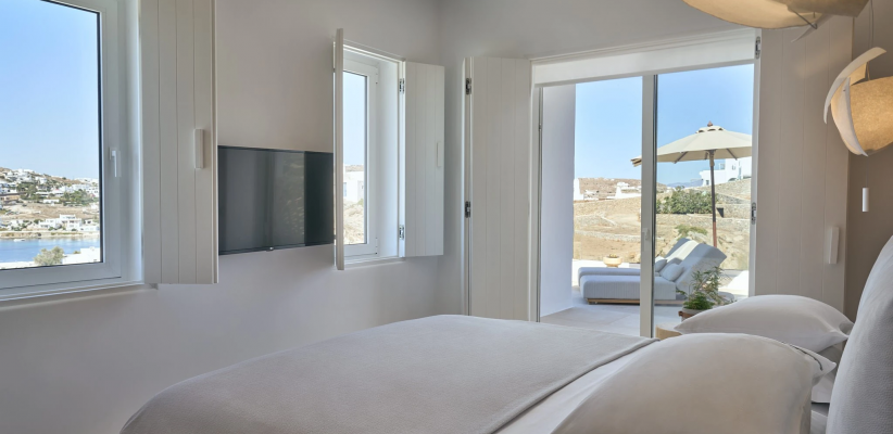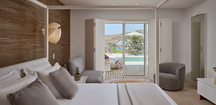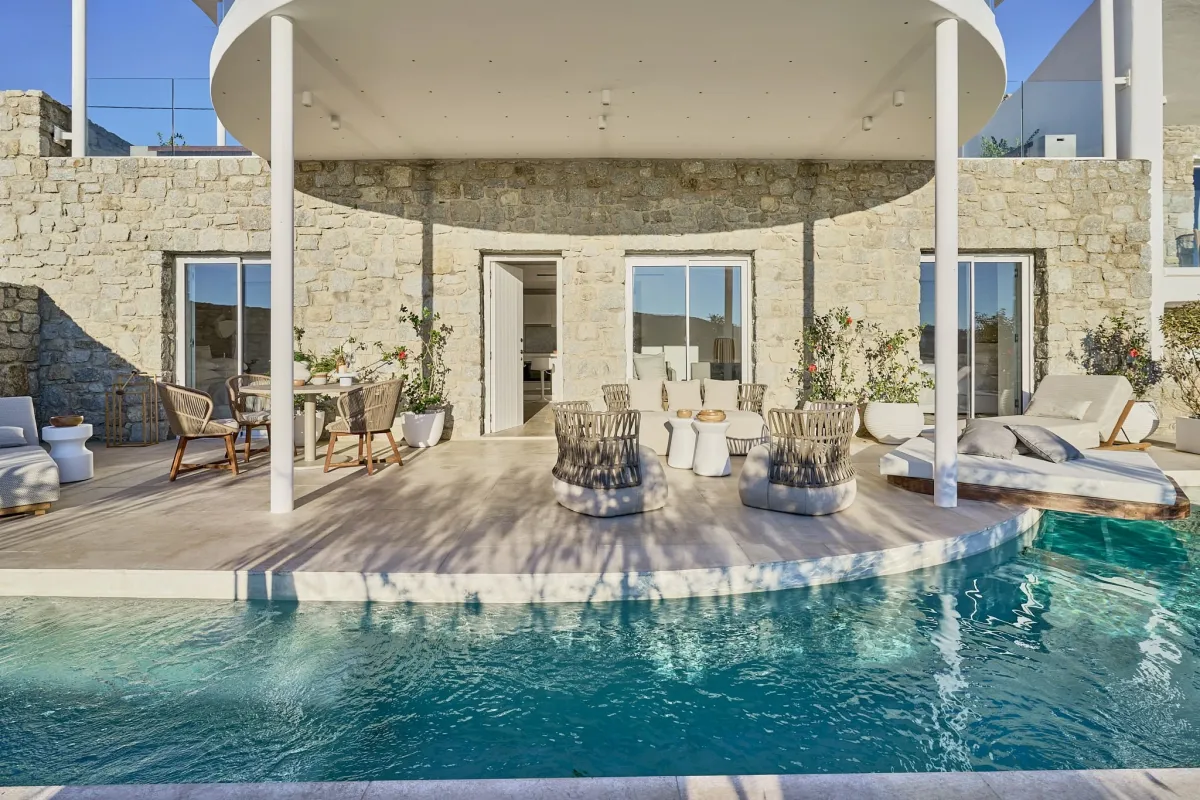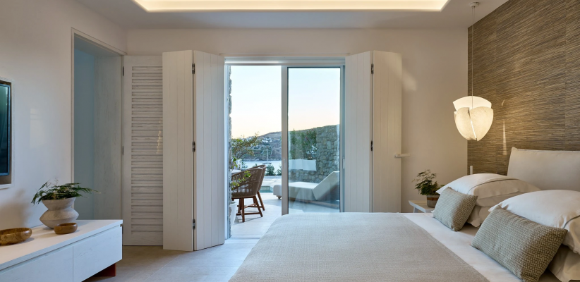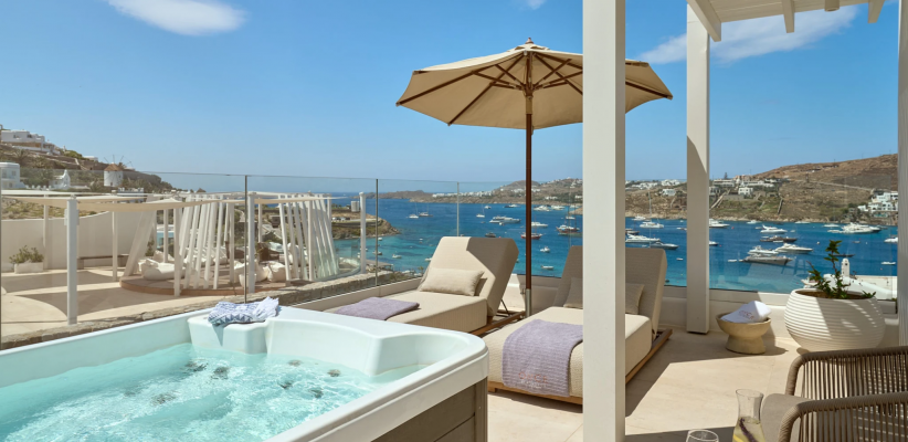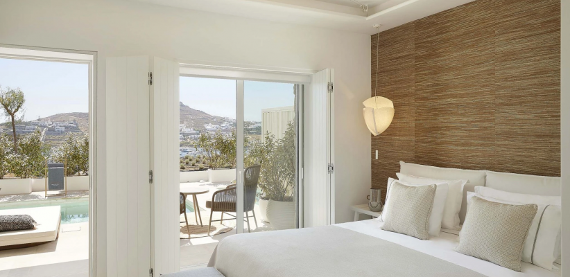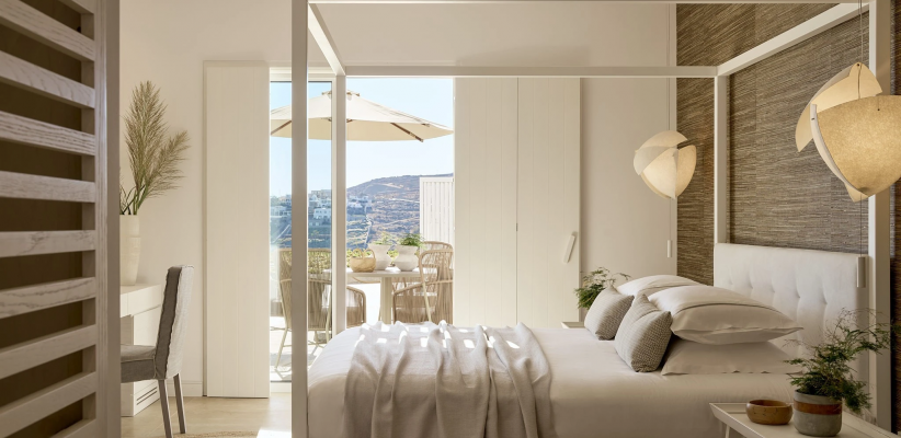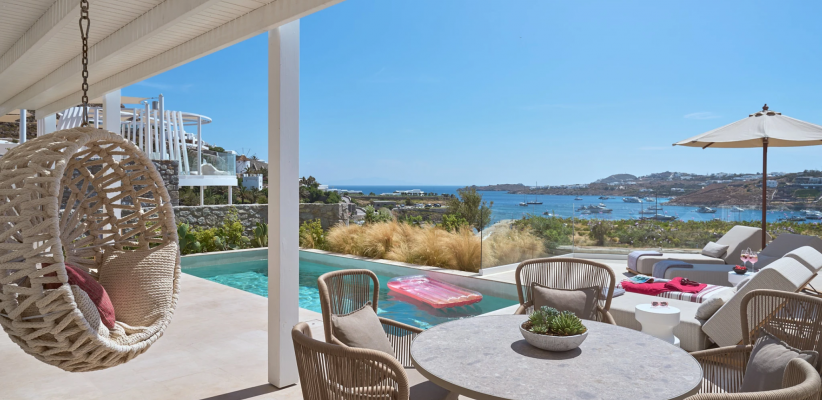 Отель Once in Mykonos Luxury Resort Adults Only, расположенный прямо над величественным пляжем Орнос, воплощает дух культового курорта Миконос в Греции.