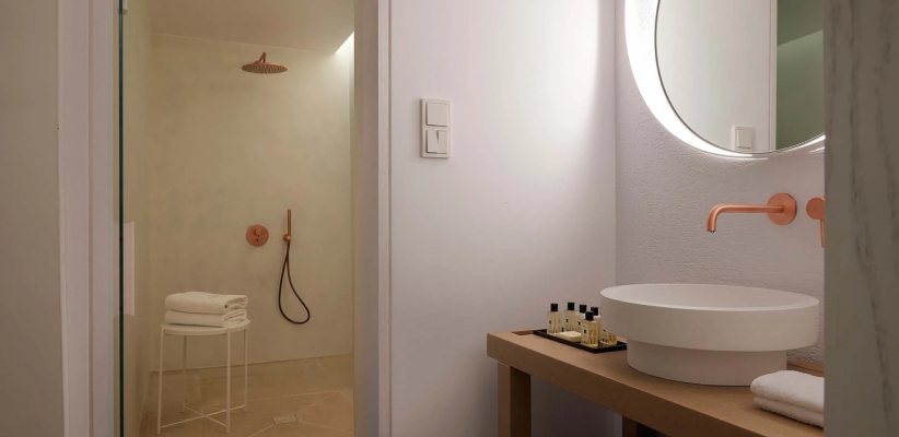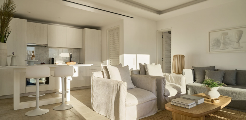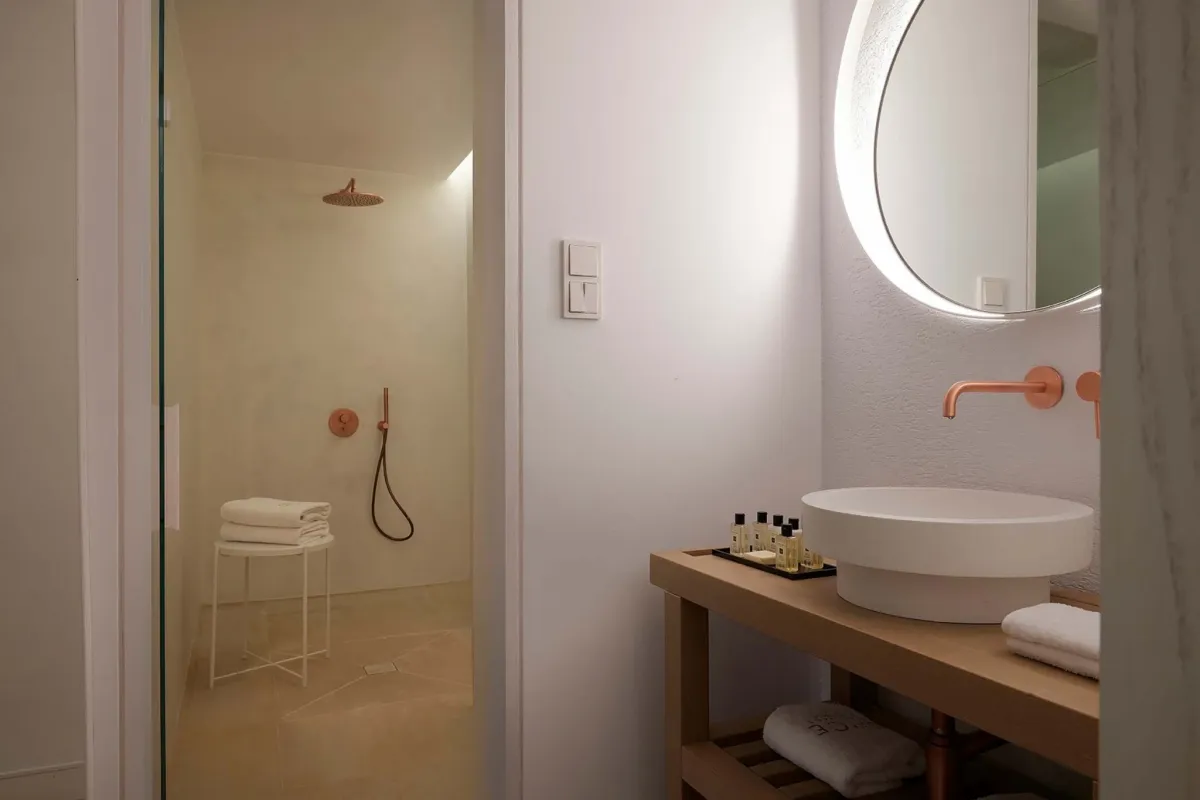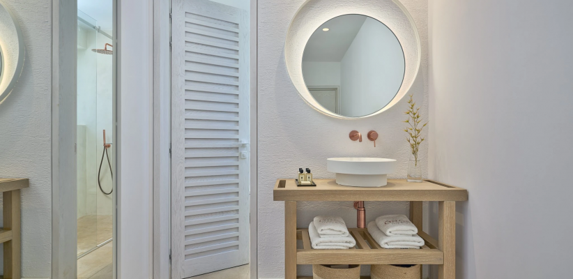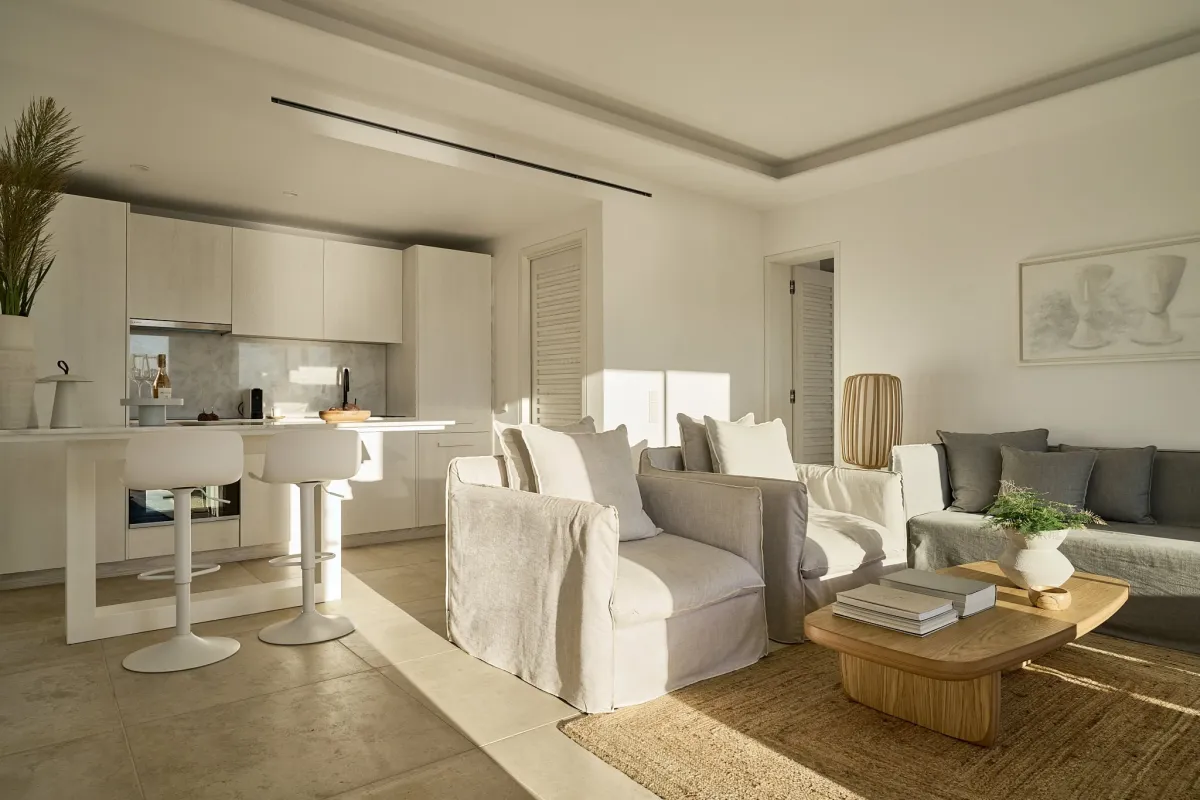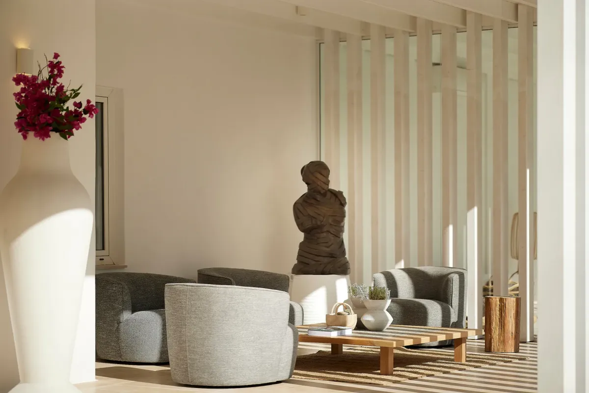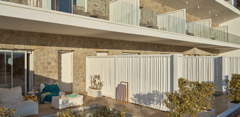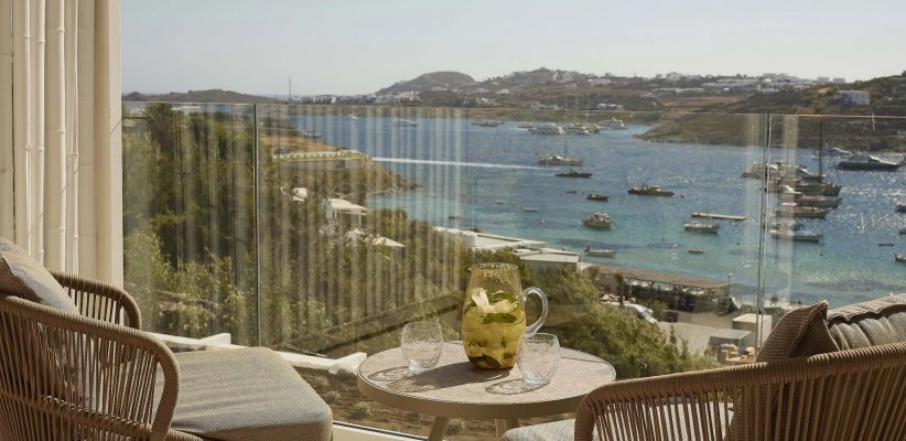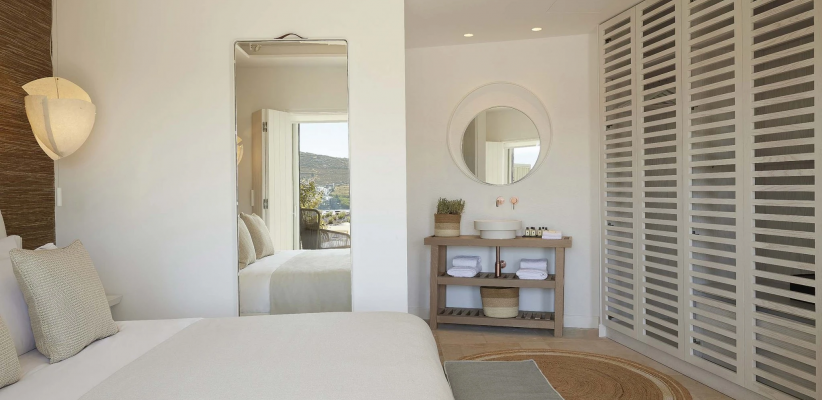 Отель Once in Mykonos Luxury Resort Adults Only, расположенный прямо над величественным пляжем Орнос, воплощает дух культового курорта Миконос в Греции.