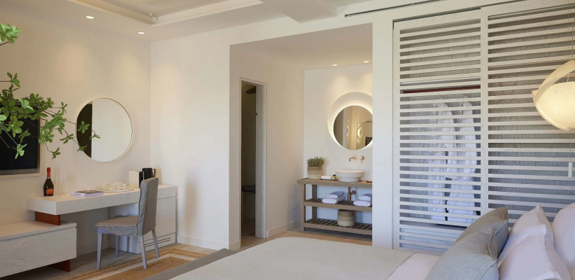 45 м2, номер с видом на море. В номере: две спальни с кроватью king-size и двумя односпальными, телевизор, рабочий стол, ванная комната. Максимальное количество гостей: 4.Signature Suite Sea View with Private Pool