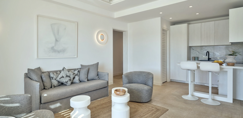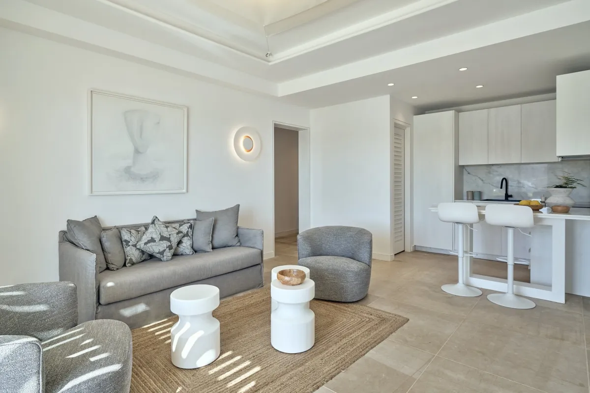 83 м2, номер с видом на море, частной террасой и бассейном. В номере: две спальни с кроватями king-size, queen-size и диваном-кроватью, кухня, телевизор, рабочий стол, две ванные комнаты. Максимальное количество гостей: 5.Elite Two-Bedroom Suite Sea View with Private Pool