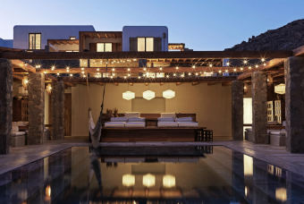 147 – 150 м2, открытое пространство площадью 438 – 1105 м2, вид на море. Одна кровать king-size и две односпальные кровати, которые можно объединить в одну кровать king-size в двух спальнях, бассейн площадью 30 м2, кухня, бар, прачечная, гостиная, джакузи и душ под открытым небом. Максимальное количество гостей: 4 взрослых или 2 взрослых и 2 ребенка.Villa Ilios