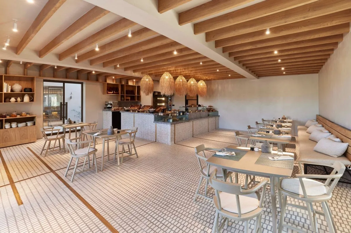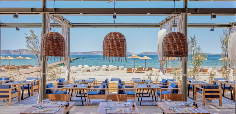 - Parelía – ресторан греческой кухни на берегу, вдохновленный атмосферой дружеских трапез. Здесь подают современные интерпретации традиционных блюд, основанных на местных ингредиентах и техниках, характерных для региональной кухни