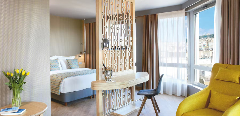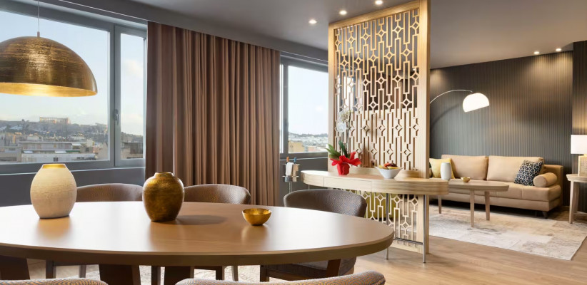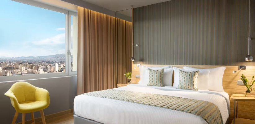 48,5 м2, спальня, отдельная гостиная, панорамный вид на город. Количество гостей: 3Полулюкс/ Junior Suite Acropolis View