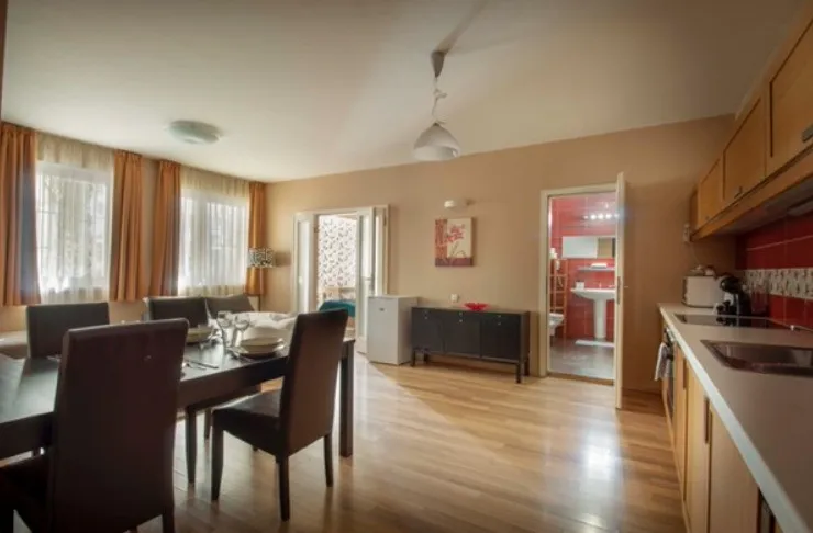 60 м2, балкон, спальня с двуспальной кроватью, две односпальные кровати, гостиная зона, обеденная зона. Максимальное количество гостей: 5-7.